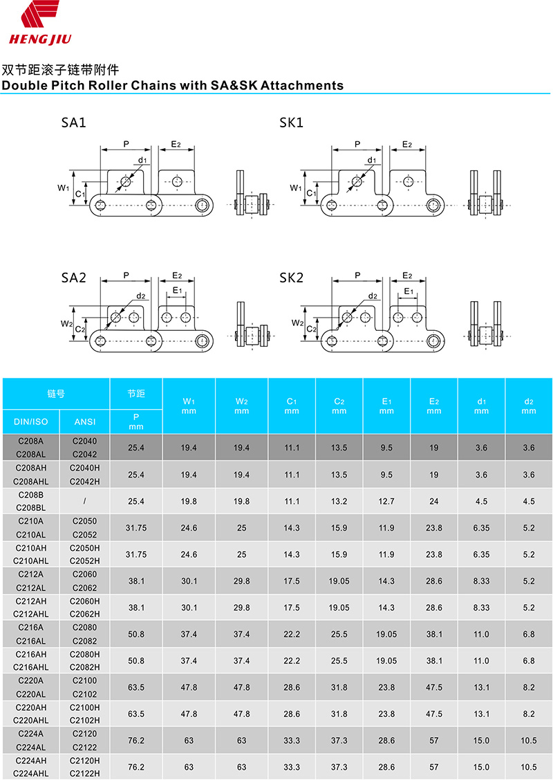 ●带附件链条,包括A、K、SA、SK、M、D等