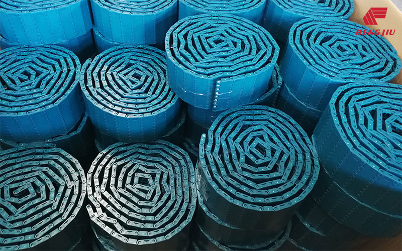 标准化标准塑料链板用于一般的易拉罐、PET瓶、玻璃瓶及纸盒包装输送;高摩擦性链板(带橡胶垫、顶部带橡胶条)用于爬坡和下坡输送;带滚珠的链板用于输送物有堆积的输送机上,以减少产品间的背压力和降低噪音;这一系列的产品使输送设备得以标准化,从而可以使用相同标准的链轮、轨道、回转轮和摩擦条。