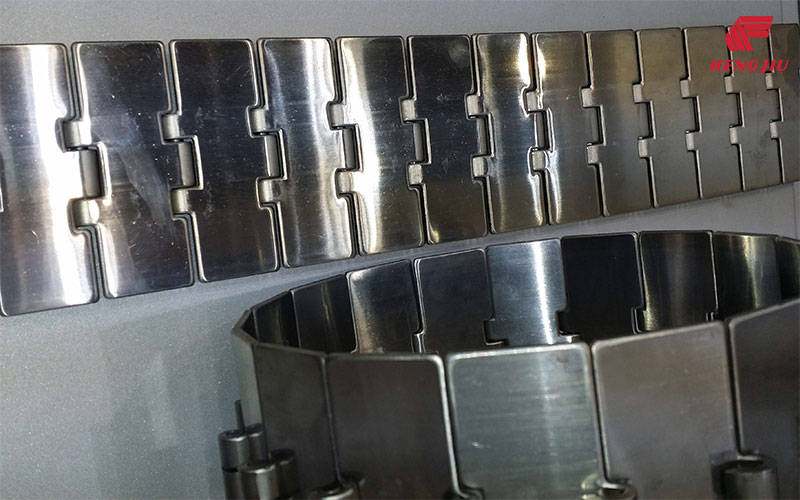 不锈钢平顶链的技术性能主要取决于其原材料和制造过程的工艺技术水平。不同的金属材料特性决定了平顶链产品的适用环境和工况条件。目前可供选择的链板材料有AISI 420、AISI 430、AISI 304和特殊铬镍钢四种,销轴材料有AISI 420、AISI 431、AISI 304三种。其中AISI 420链板与AISI 420销轴、AISI 430和特殊铬镍钢链板与AISI 431销轴、AISI 304链板与AISI 431或AISI 304销轴的基于材料匹配的五种装配方式。