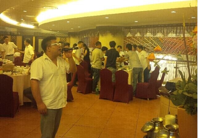 会议结束后,集团领导与来自5个子公司的60多位销售代表合影留念。随后是各兄弟子公司及领导一起晚宴欢唱,其乐融融。