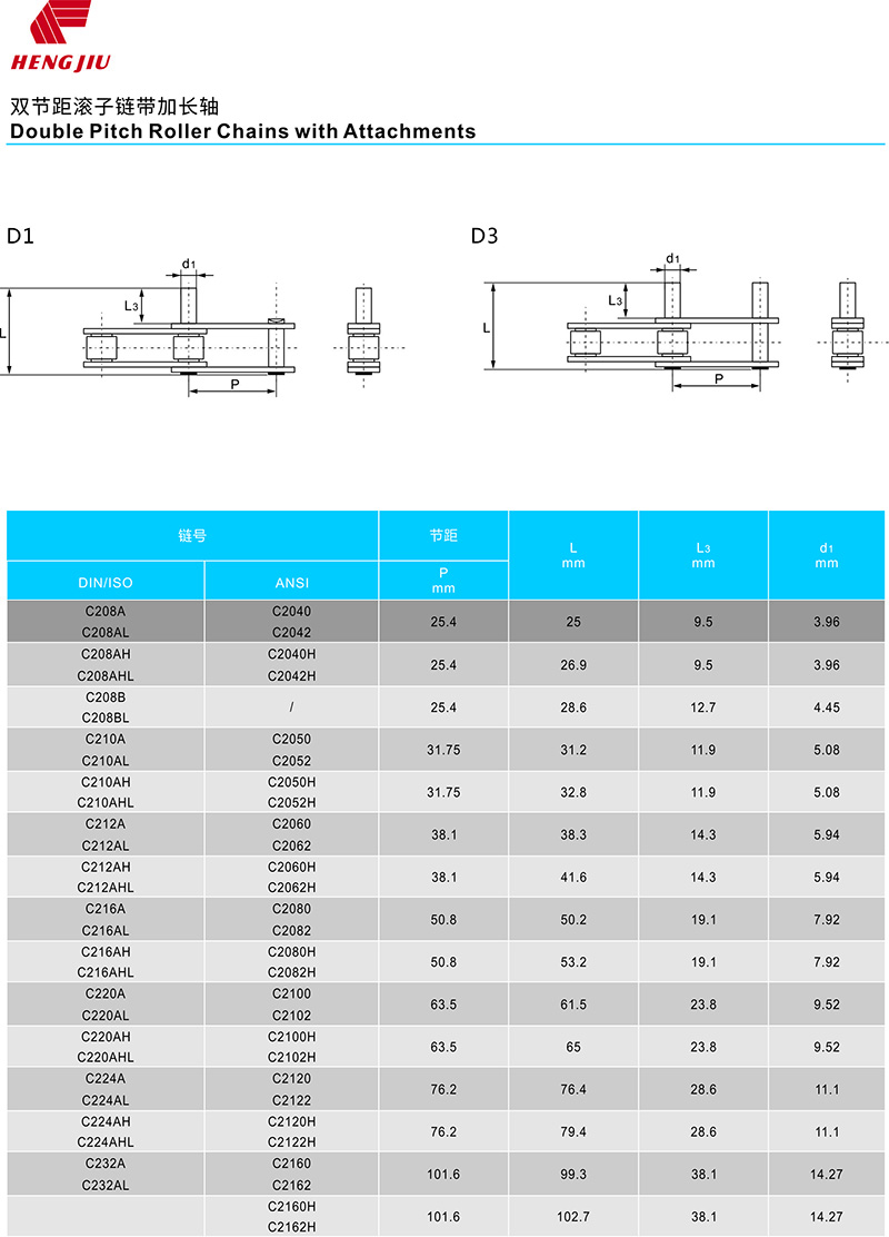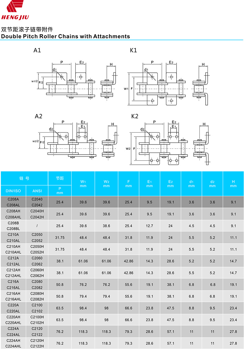 ●带附件链条,包括A、K、SA、SK、M、D等