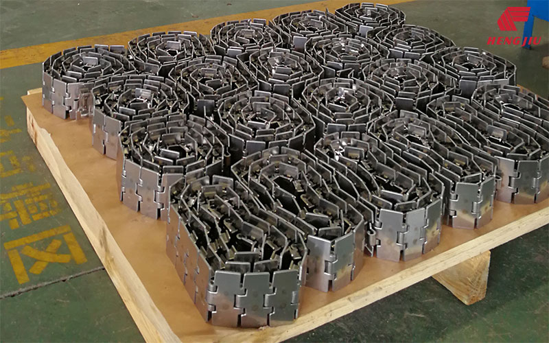 不锈钢平顶链的技术性能主要取决于其原材料和制造过程的工艺技术水平。不同的金属材料特性决定了平顶链产品的适用环境和工况条件。目前可供选择的链板材料有AISI 420、AISI 430、AISI 304和特殊铬镍钢四种,销轴材料有AISI 420、AISI 431、AISI 304三种。其中AISI 420链板与AISI 420销轴、AISI 430和特殊铬镍钢链板与AISI 431销轴、AISI 304链板与AISI 431或AISI 304销轴的基于材料匹配的五种装配方式。